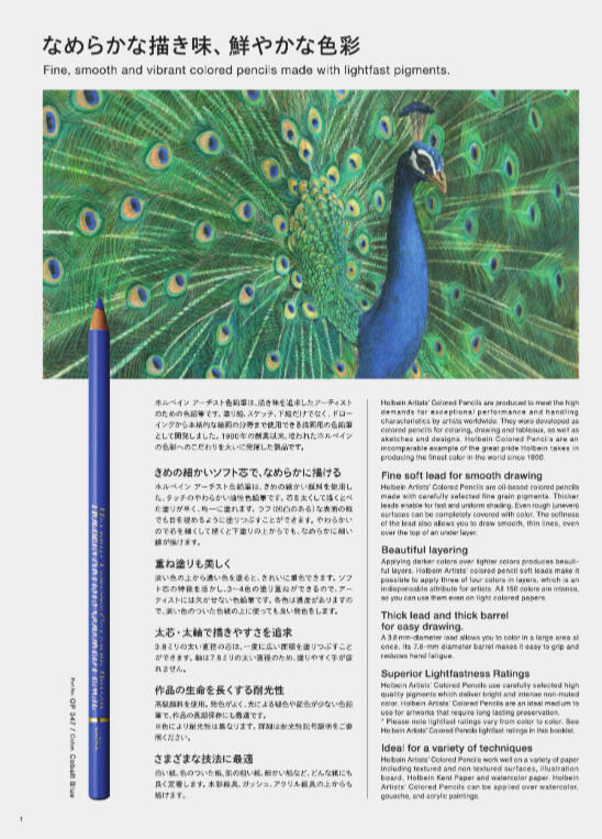 Pürüzsüz ve çizmesi, karıştırması ve üstünü boyaması kolay olan Holbein Artist Renkli Kalemler, dünya çapındaki sanatçıların olağanüstü performans ve kullanım özellikleri için yüksek talepleri karşılamak üzere üretilmiştir. Çizim,