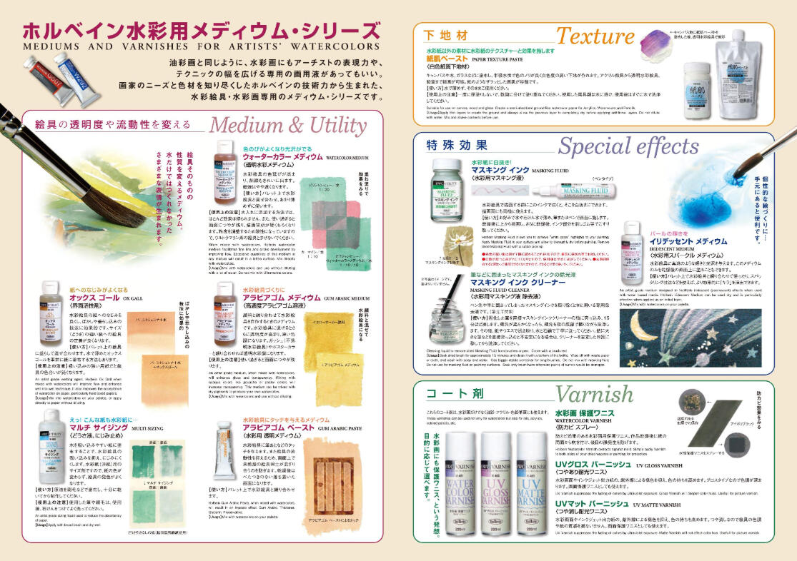 Holbein tarafından üretilen endüstri standardı sulu boya destekleyici malzemeleri.Satın al.